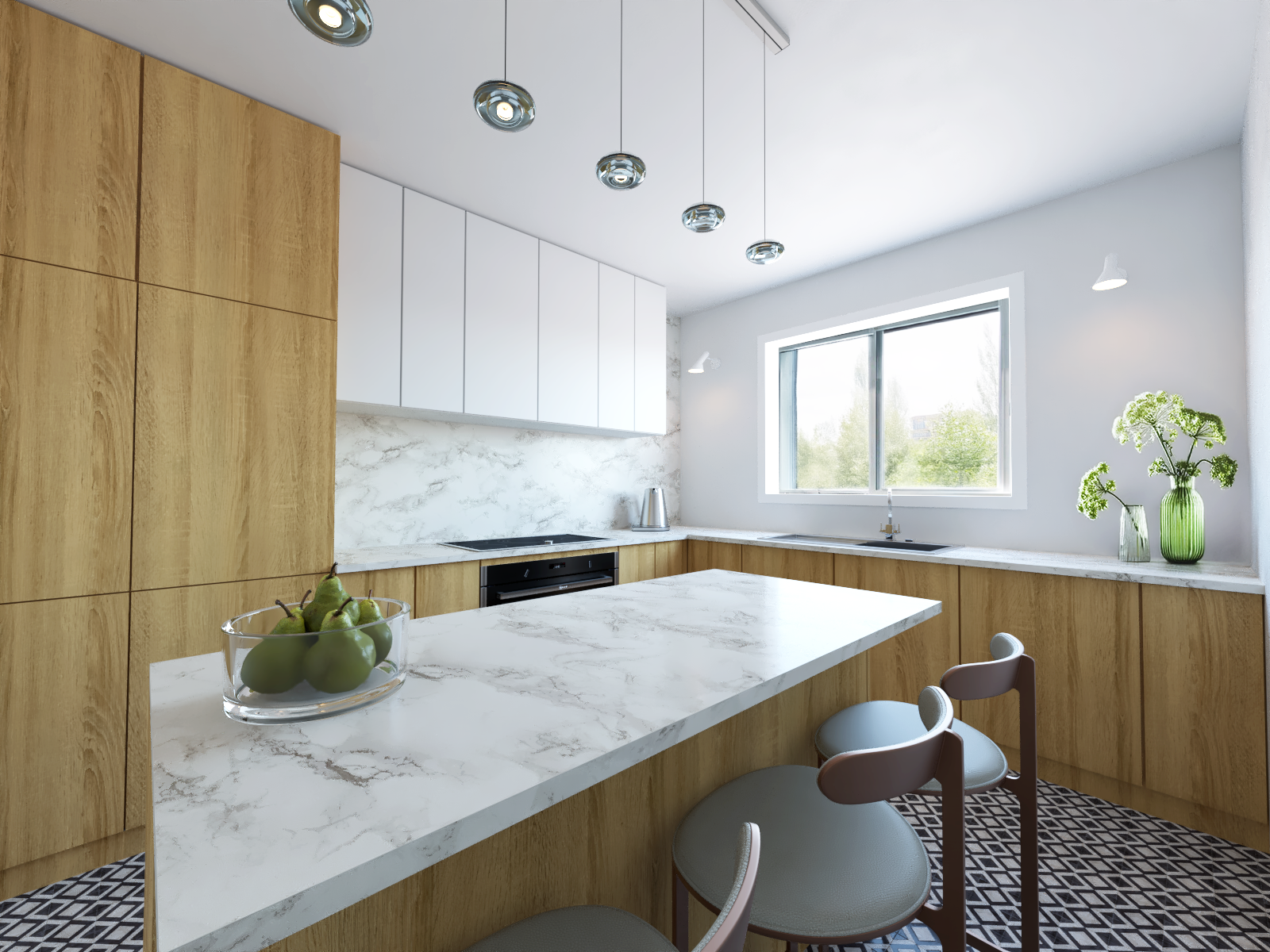 Virtual staging focuses on adding furniture and decor to a space, while virtual renovation involves reimagining the larger built-ins and finishes of a room like kitchen, bathroom, living room, mud-room. It’s ideal for spaces that need significant updates, like replacing outdated cabinetry or modernizing layouts.