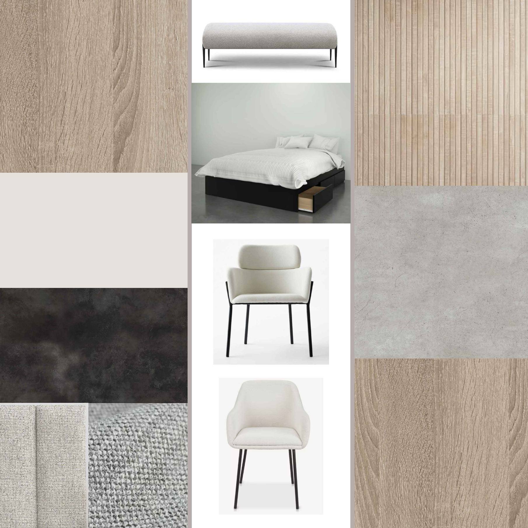 A neutral color palette with soft textures and materials creates a calm, cohesive space in the bedroom and bathroom. Subtle variations in wood, stone, and fabric give the room depth, blending contemporary and timeless elements.