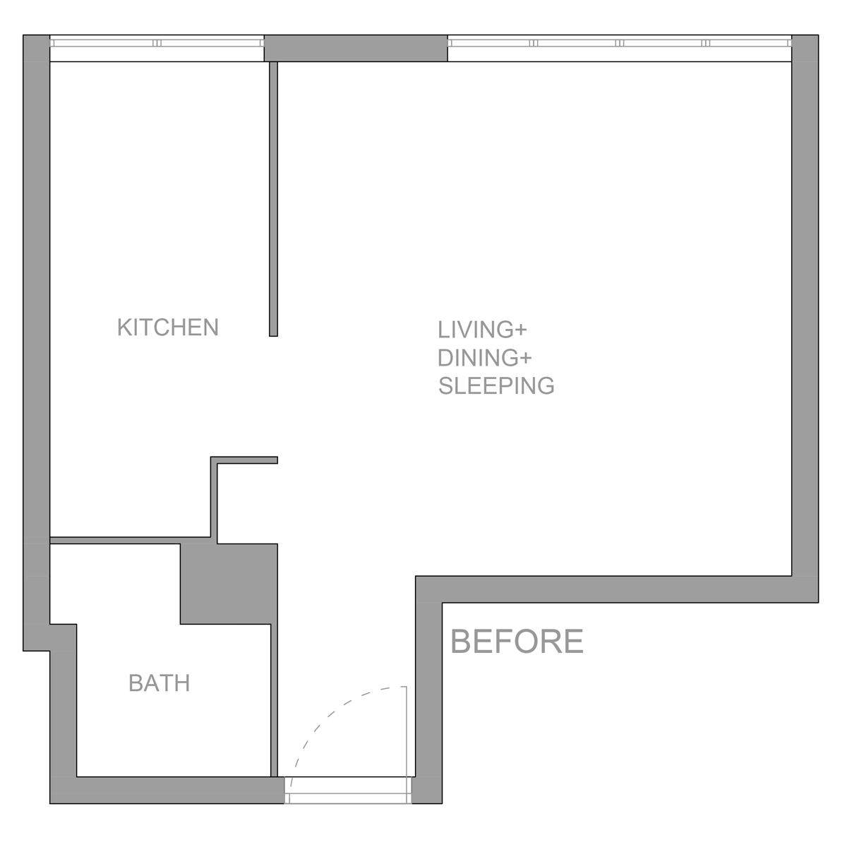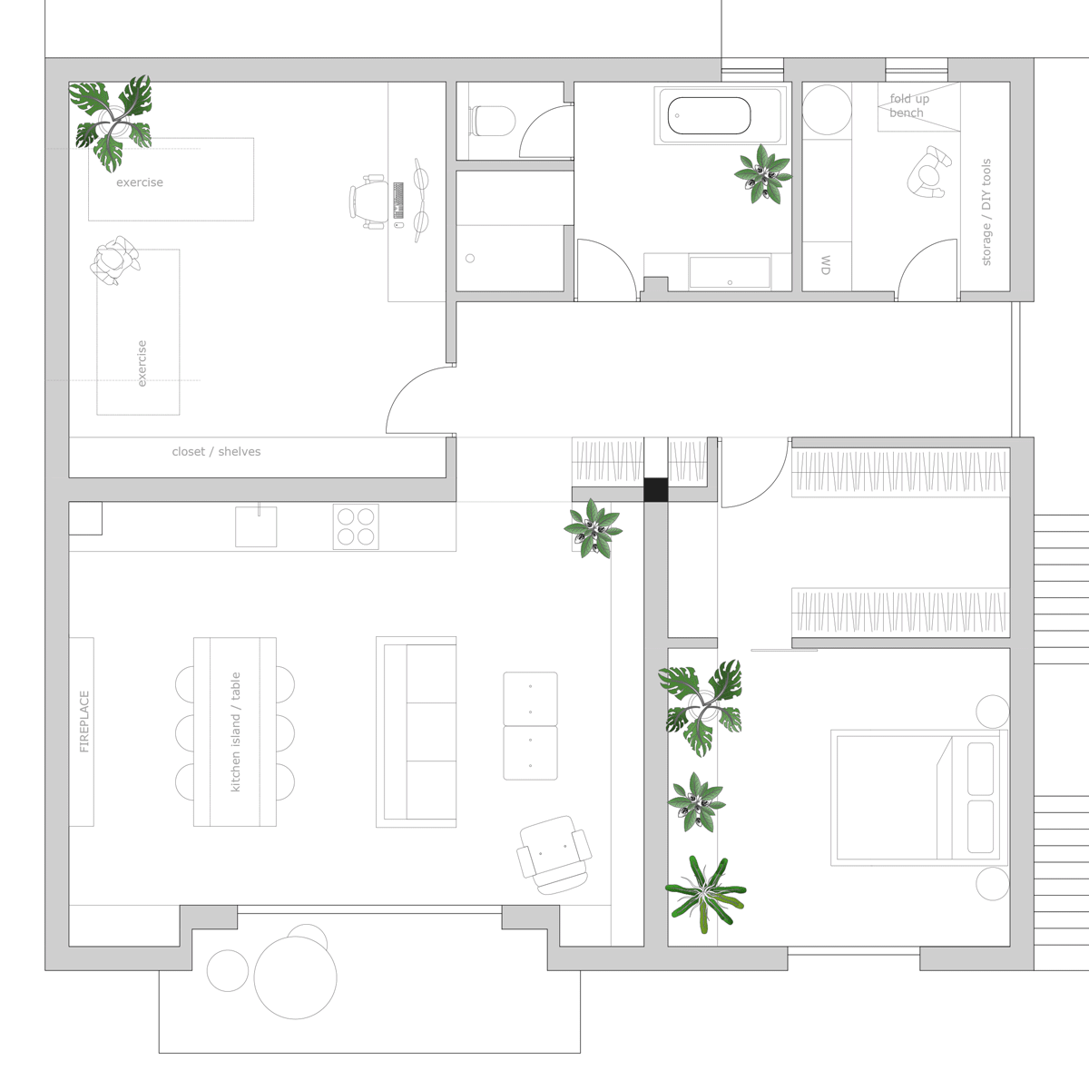 How to have a separate bedroom, bathroom, and flexible space for exercising, relaxing, and having a dinner for 10 in 270 sqft / 25 sqm. No small task, but we created this flexible beauty.