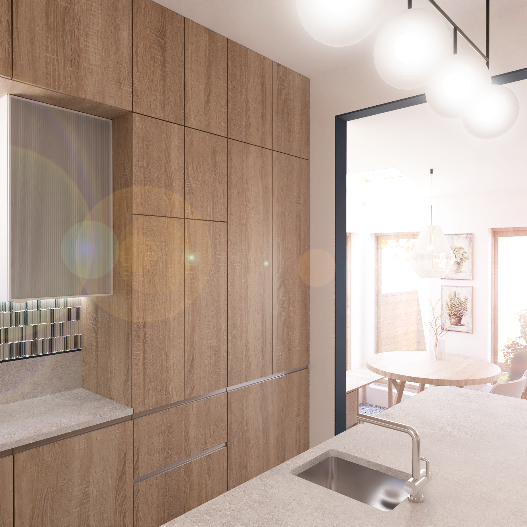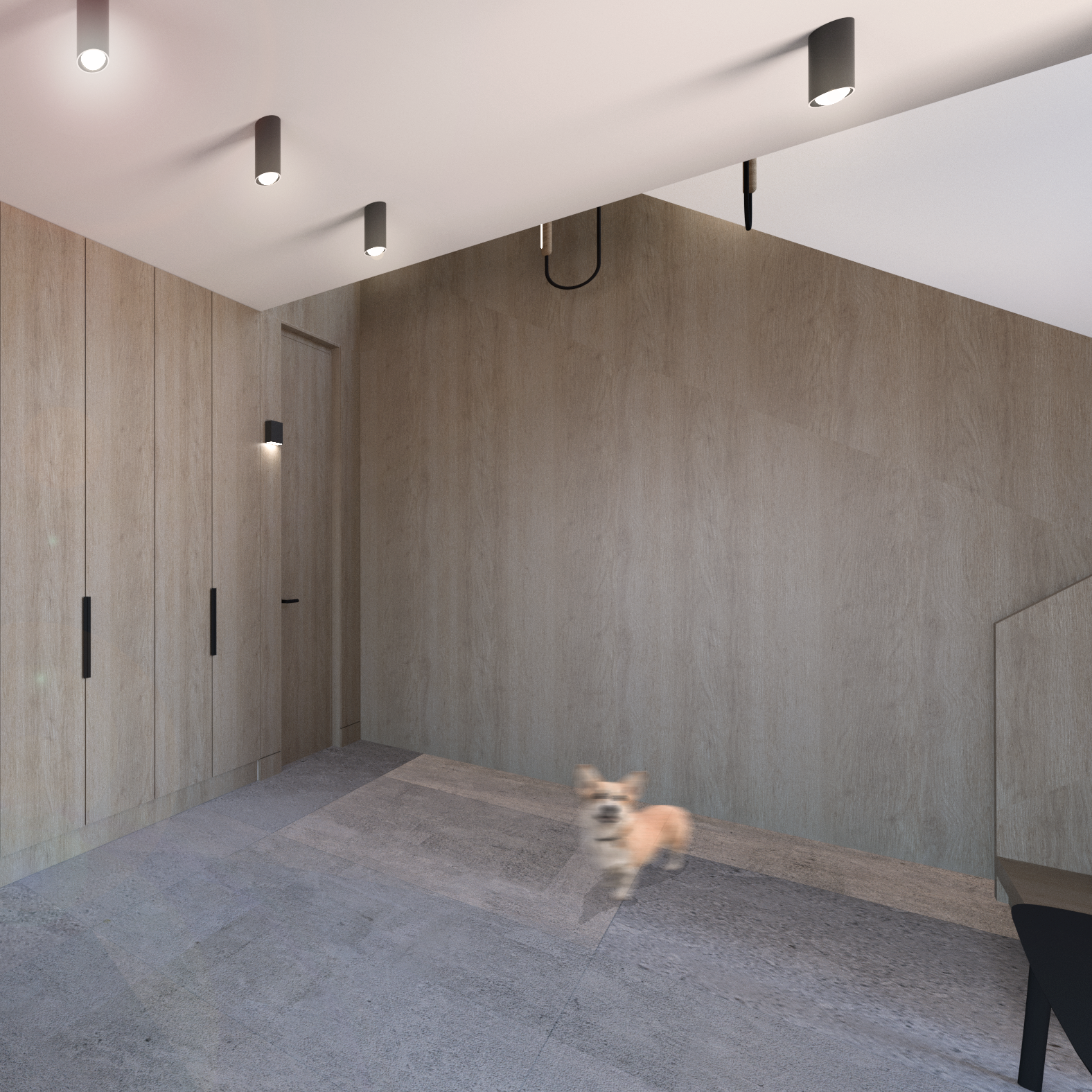 Feeling of a warm embrace when entering the house, facilitated by oak tones.
