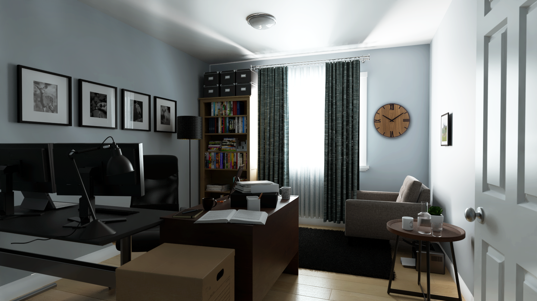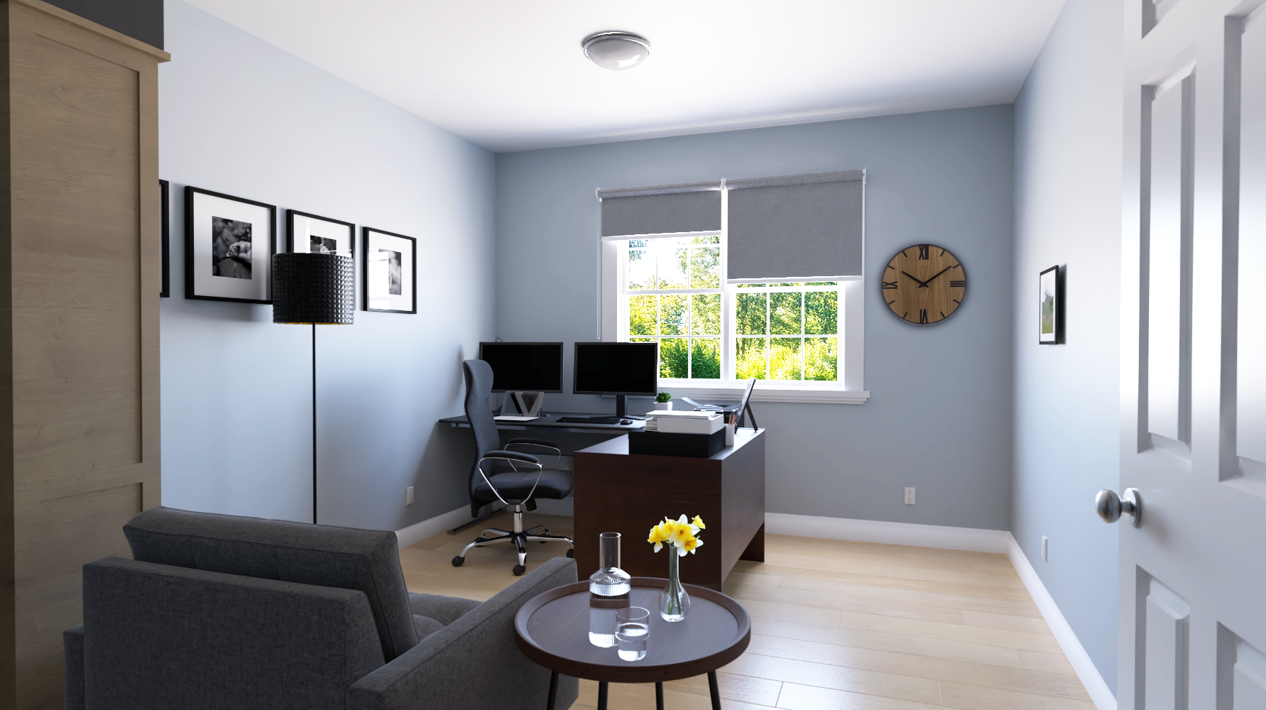 “I love the peace and quiet in my home office, but I just can’t seem to focus here the way I do in other places. I feel tired quickly and my productivity drops a lot when I work in this room. It’s strange because I feel like there’s enough space, but everything still feels crowded. I chose this blue paint because it inspired me when I first saw it, but now the room feels dark all the time. I want the space to feel lighter and more energizing without losing the calming blue I love. I’d like to start by keeping all of my existing furniture.”